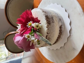 Seasonal tarts, olive oil cakes, and celebration cakes, finished with edible flowers.